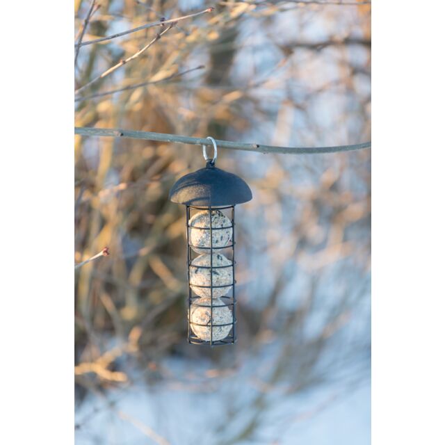 Hranilica za ptice napravljena je od metala i u nju mogu da stanu do 4 masne kugle. Predviđena je za kačenje na granu, gredu, ogradu, terasu, a na njoj možete da prihranjujete ptice koje vole masniji zalogaj u zimskim mesecima. Masnu kuglu možete napraviti i sami, uputstvo za pripremu nalazi se ovde